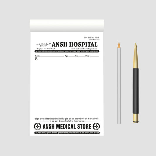 Regular price Rs. 160.00Regular priceUnit price / perSale price Rs. 160.00This prescription pad is designed for medical professionals to efficiently and clearly document patient prescriptions. It features ample writing space and durable paper to ensure legibility and reliability. Ideal for maintaining organized and professional patient records, this pad supports accurate communication between doctors and pharmacies.